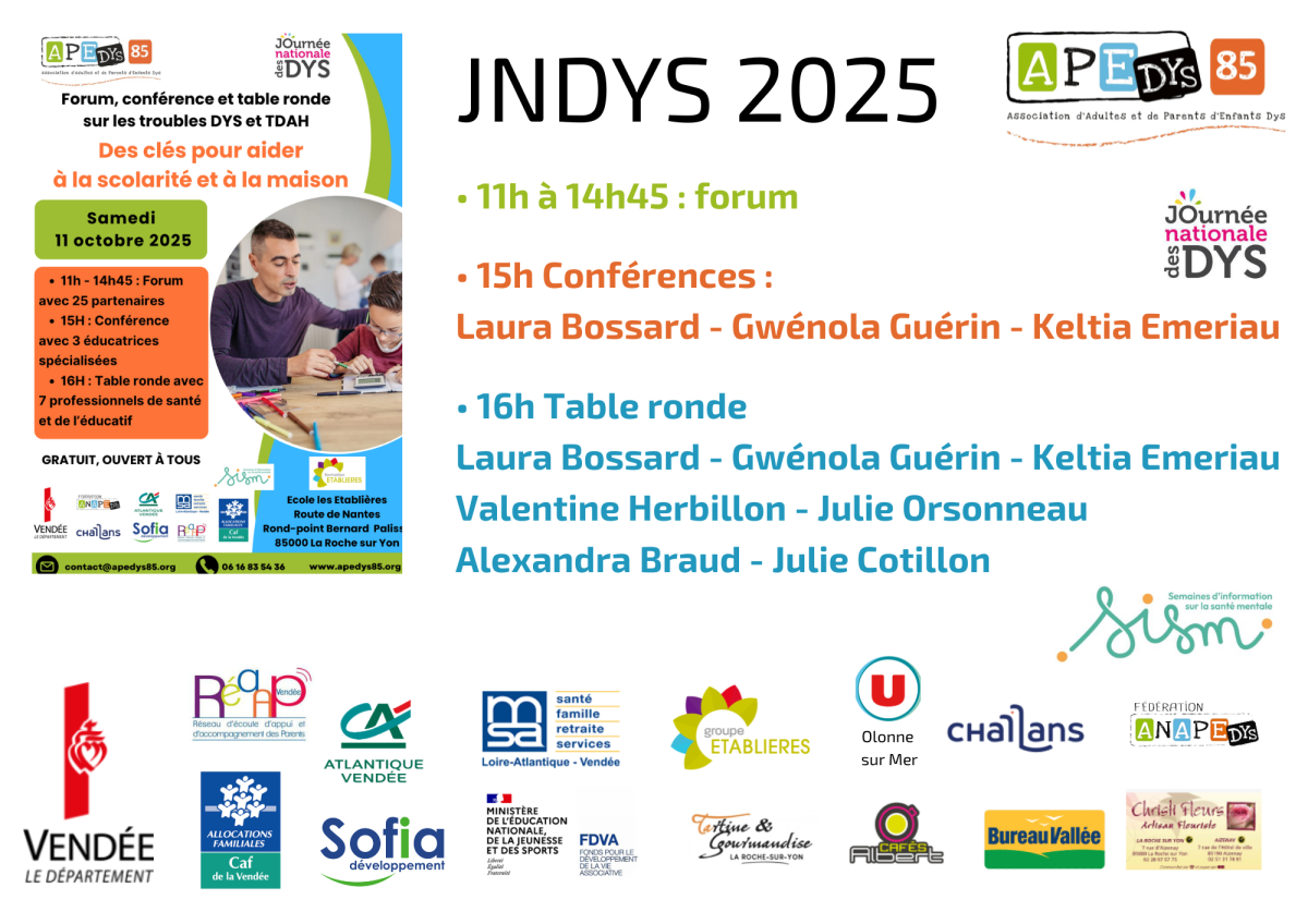 Participation à la table ronde de professionnels pour l’association Apedys85 lors de la journée des DYS le 11 octobre 2025.